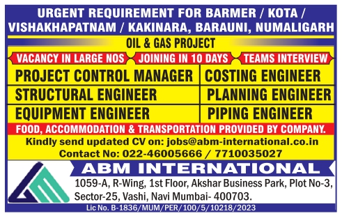 PROJECT CONTROL MANAGER COSTING ENGINEER STRUCTURAL ENGINEER EQUIPMENT ENGINEER PLANNING ENGINEER PIPING ENGINEER