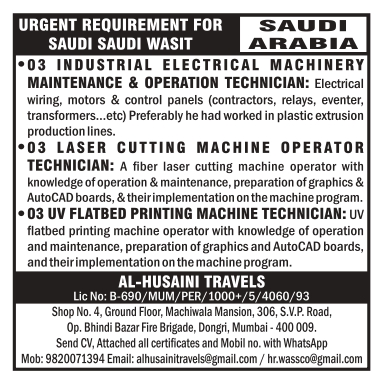 MAINTENANCE & OPERATION TECHNICIAN 03 LASER CUTTING MACHINE OPERATOR TECHNICIAN03 UV FLATBED PRINTING MACHINE TECHNICIAN