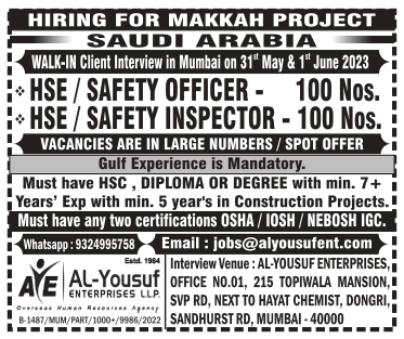 HSE/SAFETY OFFICER - HSE/SAFETY INSPECTOR