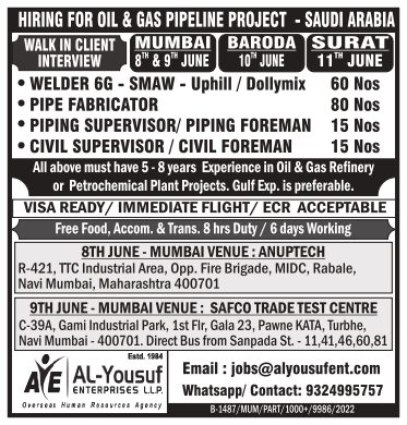 WELDER 6G-SMAW - Uphill / Dollymix • PIPE FABRICATOR PIPING SUPERVISOR/ PIPING FOREMAN CIVIL SUPERVISOR/CIVIL FOREMAN