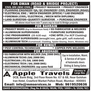ELECTRICAL ENG/MECH ENGINEER (BTECH) LAB ENGINEER CIVIL DIV (BSC CIVIL): PROJECT MANAGER PLANNING ENGINEER QA/QC ENGINEER CIVIL ENGINEER (ROAD) FOREMAN (CIVIL/ELECTRICAL/MECH WITH DIPLOMA) -LAND SURVEYOR QUANTITY SURVEYOR PURCHASE ENGINEER