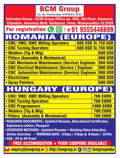 CNC/VMC/HMC Milling Operators CNC Turning Operators Welders (Tig & Mig) •Fitters (Assembly & Mechanical) CNC Mechanical Maintenance (Service) Engineer CNC Electrical Maintenance (Service) Engineer CNC Automation Maintenance (Service ) Engineer Electrici