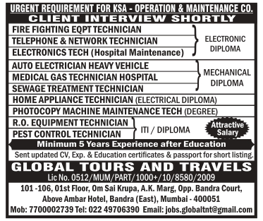 Job By - GLOBAL TOURS AND TRAVELS