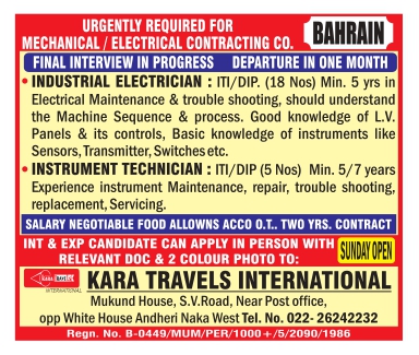 INDUSTRIAL ELECTRICIAN , INSTRUMENT TECHNICIAN