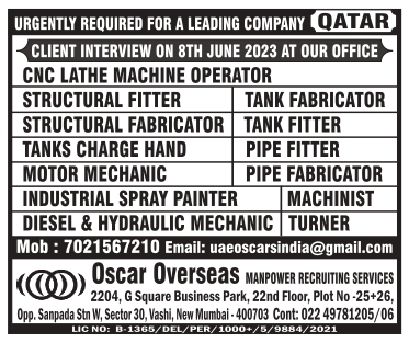 CNC LATHE MACHINE OPERATOR STRUCTURAL FITTER STRUCTURAL FABRICATOR TANKS CHARGE HAND MOTOR MECHANIC INDUSTRIAL SPRAY PAINTER TANK FABRICATOR TANK FITTER PIPE FITTER PIPE FABRICATOR MACHINIST DIESEL & HYDRAULIC MECHANIC TURNER