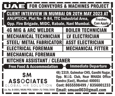 4G MIG & ARC WELDER BOILER TECHNICIAN MECHANICAL TECHNICIAN LV ELECTRICIAN STEEL/METAL FABRICATOR ASST ELECTRICIAN ELECTRICAL FOREMAN MECHANICAL FITTER MECHANICAL FOREMAN KITCHEN ASSISTANT/CLEANER