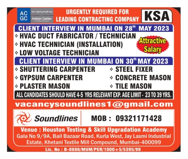 SHUTTERING CARPENTER + STEEL FIXER GYPSUM CARPENTER • CONCRETE MASON PLASTER MASON → TILE MASON