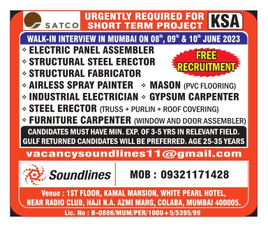 ELECTRIC PANEL ASSEMBLER STRUCTURAL STEEL ERECTOR FREE RECRUITMENT STRUCTURAL FABRICATOR AIRLESS SPRAY PAINTER MASON INDUSTRIAL ELECTRICIAN GYPSUM CARPENTER STEEL ERECTOR FURNITURE CARPENTER