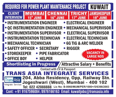 INSTRUMENTATION ENGINEER • ELECTRICAL ENGINEER QC INSTRUMENTATION ENGINEER MECHANICAL SUPERVISOR INSTRUMENTATION SUPERVISOR ELECTRICAL SUPERVISOR INSTRUMENTATION TECHNICIAN ELECTRICAL TECHNICIAN MECHANICAL TECHNICIAN .6G TIG & ARC WELDER SAFETY OFFICER