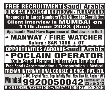 Job Type - MANWAY / FIRE WATCHER POCLAIN OPERATOR