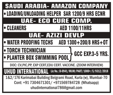 WATER PROOFING TECHS AED 1300+200/8 HRS+OT TORCH TECHNICIAN PLANTER BOX SWIMMING POOL
