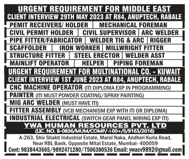 PEMIT RECEIVERS/HOLDER MECHANICAL FOREMAN CIVIL PERMIT HOLDER PIPE FITTER/FABRICATOR CIVIL SUPERVISOR ARC WELDER WELDER TIG & ARC RIGGER SCAFFOLDER IRON WORKER MILLWRIGHT FITTER STRUCTURE FITTER STEEL ERECTOR WELDER